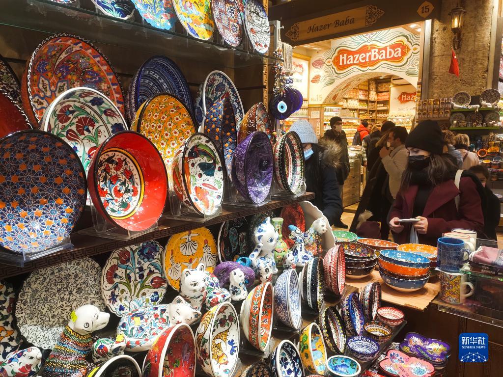 12月18日,游客在土耳其伊斯坦布尔购物。