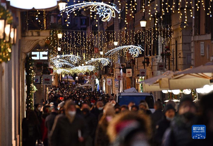 12月11日,意大利罗马一处街道被节日彩灯装点。圣诞节将至,意大利首都罗马被圣诞树和彩灯装点,节日气氛浓郁。 新华社记者金马梦妮摄