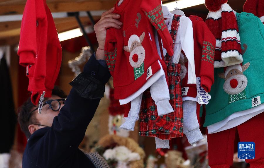 12月9日,一名男子在法国巴黎的一处圣诞市场挑选节日商品。 新华社记者 高静 摄