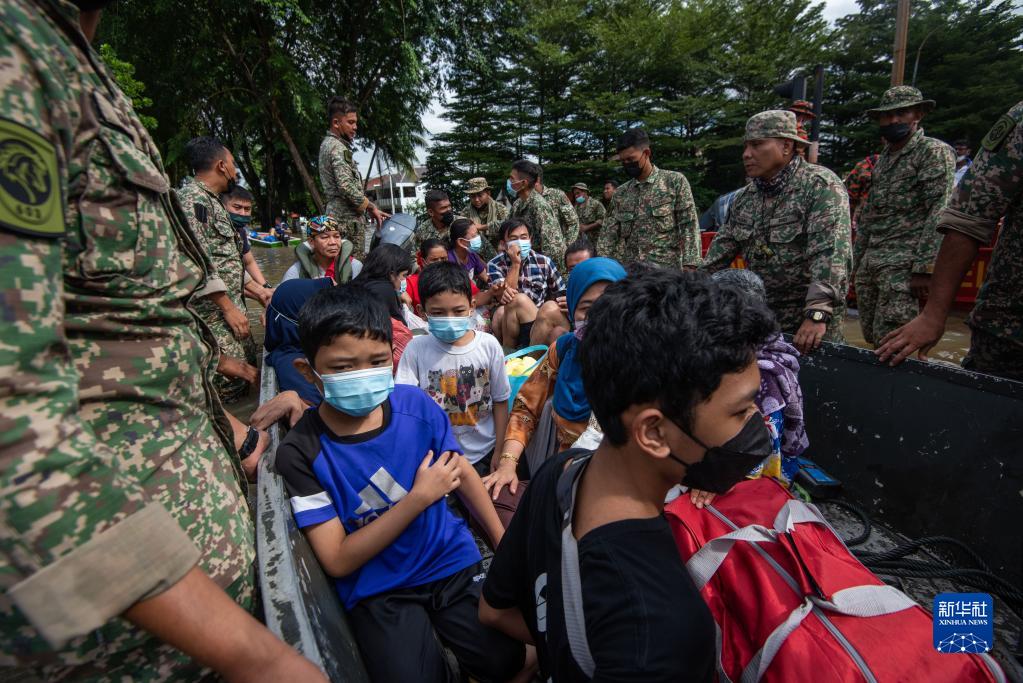12月20日,救援人员在马来西亚雪兰莪州沙阿兰转移洪水灾民。