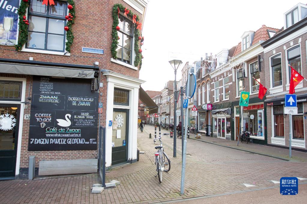 12月20日,荷兰哈勒姆的一条商业街空空荡荡。