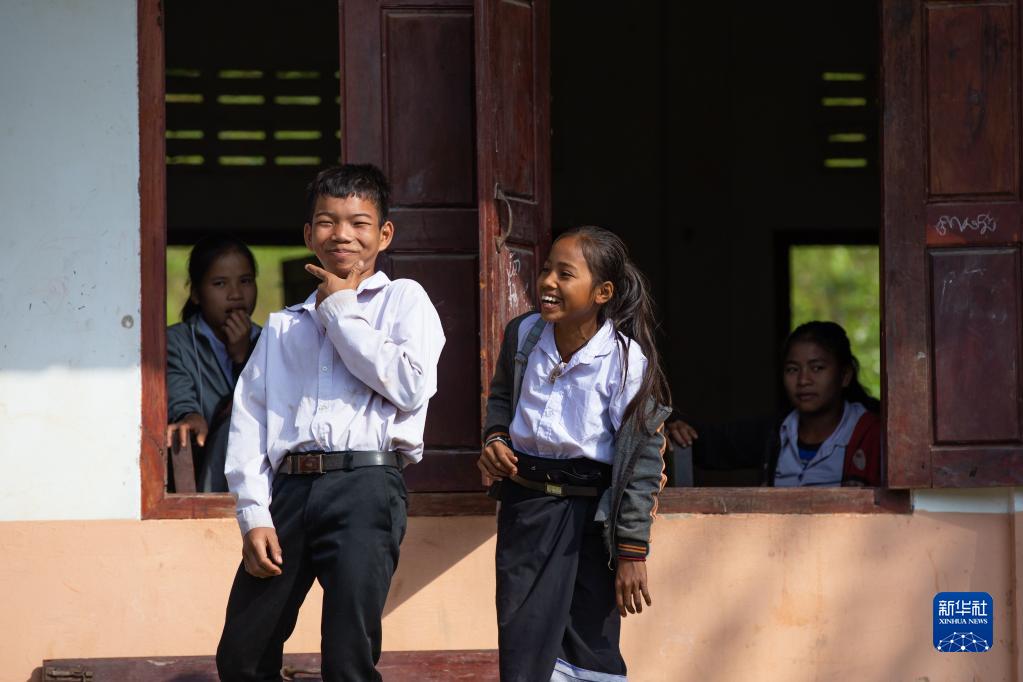 这是12月13日在老挝旺莱村拍摄的中国南方电网公司援建的旺莱村小学。新华社发(凯乔摄)