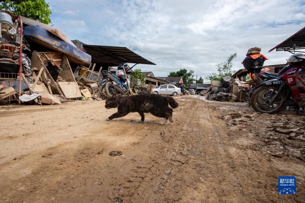 12月21日,在马来西亚雪兰莪州乌鲁冷岳,一只猫从泥地上跑过。