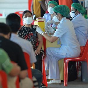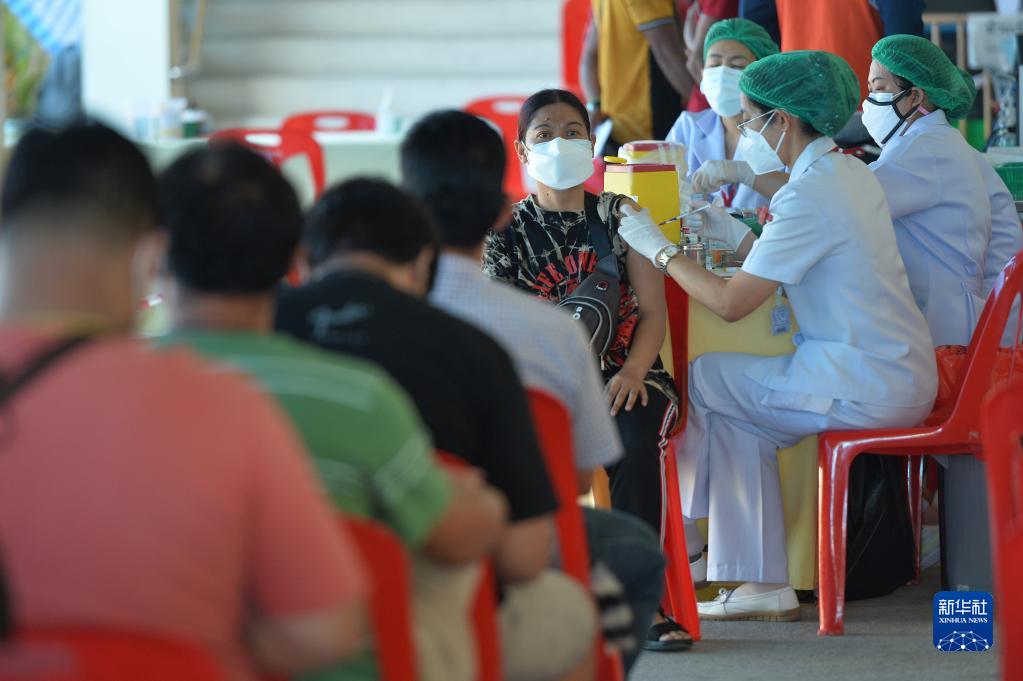 12月21日,一名女子在泰国曼谷的一处新冠疫苗接种点接种疫苗。