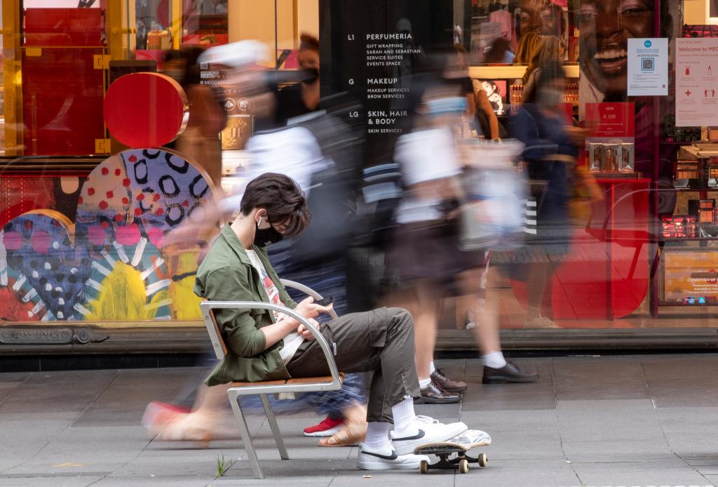 12月16日,市民佩戴口罩在澳大利亚悉尼市中心的商业街休息。新华社记者 白雪飞 摄