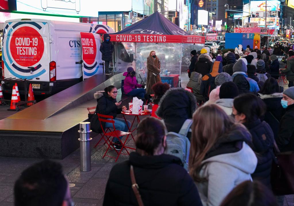 12月20日,人们在美国纽约时报广场排队等待进行核酸检测。新华社记者 王迎 摄