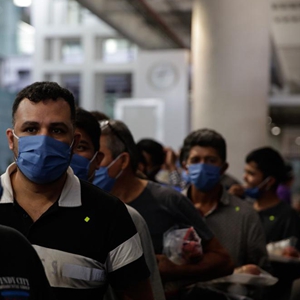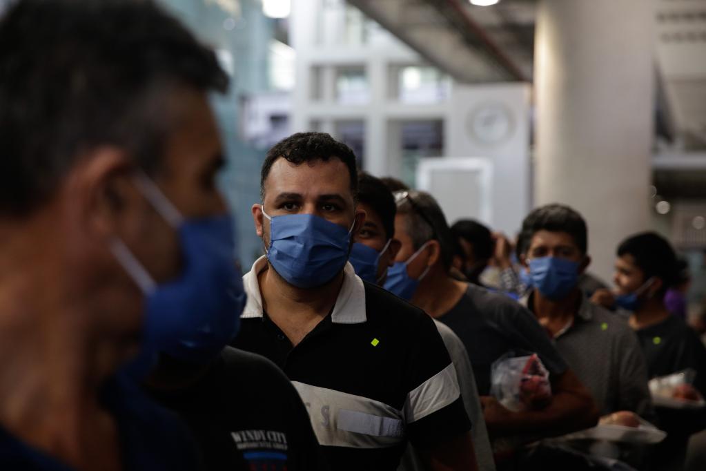 2020年5月22日,在墨西哥首都墨西哥城国际机场,被美国遣返的墨西哥籍移民在排队等待。(新华社发,弗朗西斯科·卡涅多 摄)