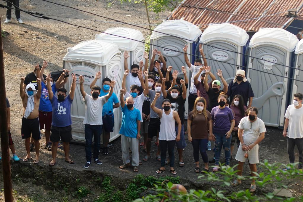 2020年5月17日,在萨尔瓦多首都圣萨尔瓦多,被从美国遣返回萨尔瓦多的移民在一处集中隔离点内招手。(新华社发,亚历山大·培尼亚 摄)