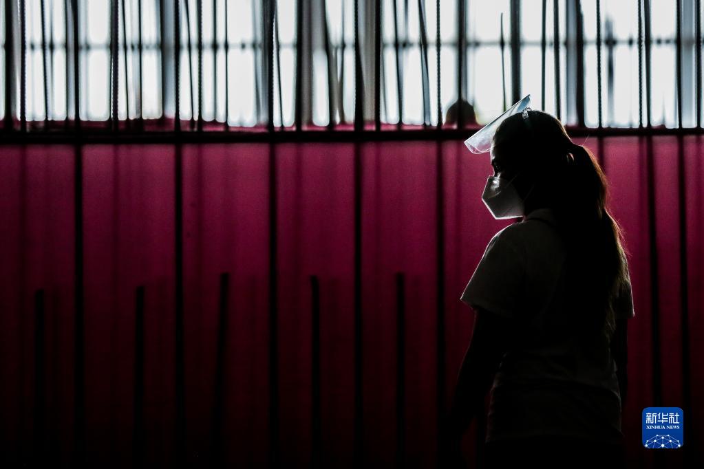 这是12月16日在菲律宾帕赛市一家商场的疫苗接种点拍摄的佩戴口罩和防护面罩的市民。