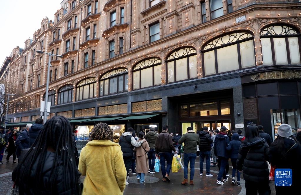 12月26日,人们走向英国伦敦的哈罗德百货商店。