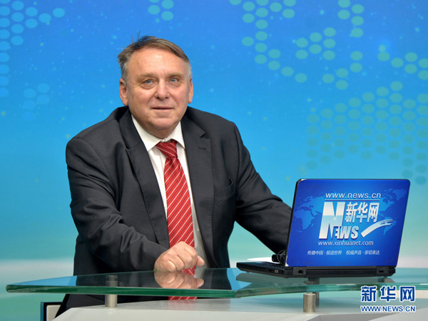 图为捷克驻华大使贝德日赫·科佩茨基做客新华网新华会客厅进行访谈。