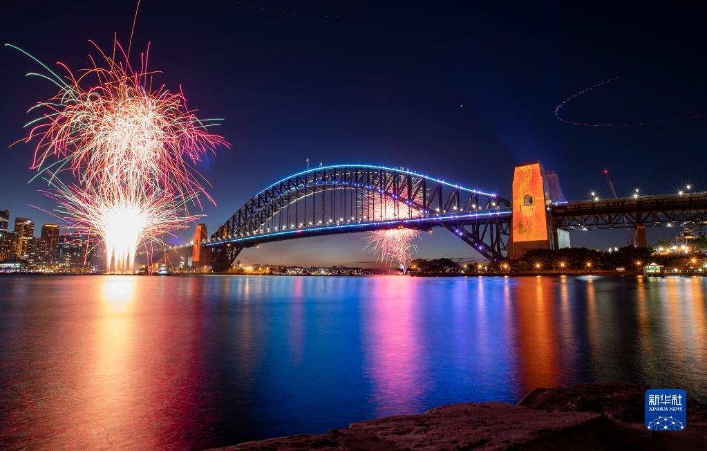 1月1日,烟花在澳大利亚悉尼海港大桥畔绽放,庆祝新年到来。新华社记者 白雪飞 摄