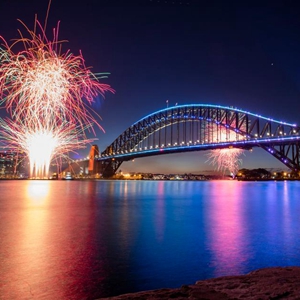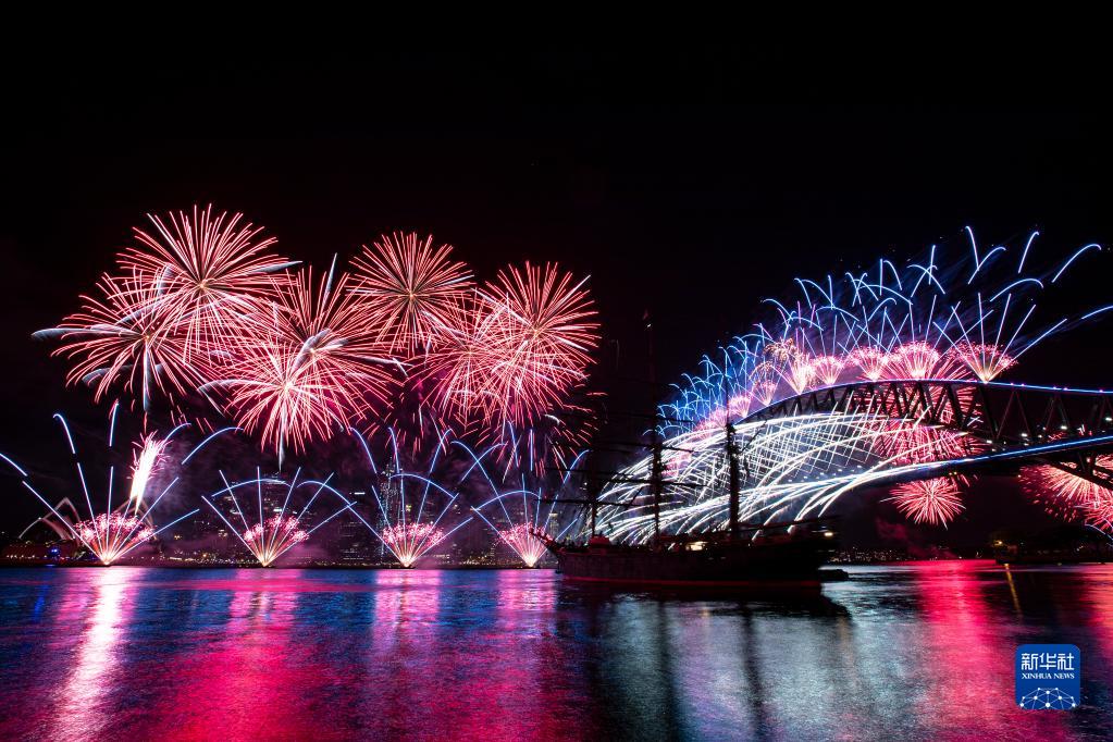 1月1日,烟花在澳大利亚悉尼歌剧院和海港大桥上空绽放,庆祝新年到来。新华社记者 白雪飞 摄