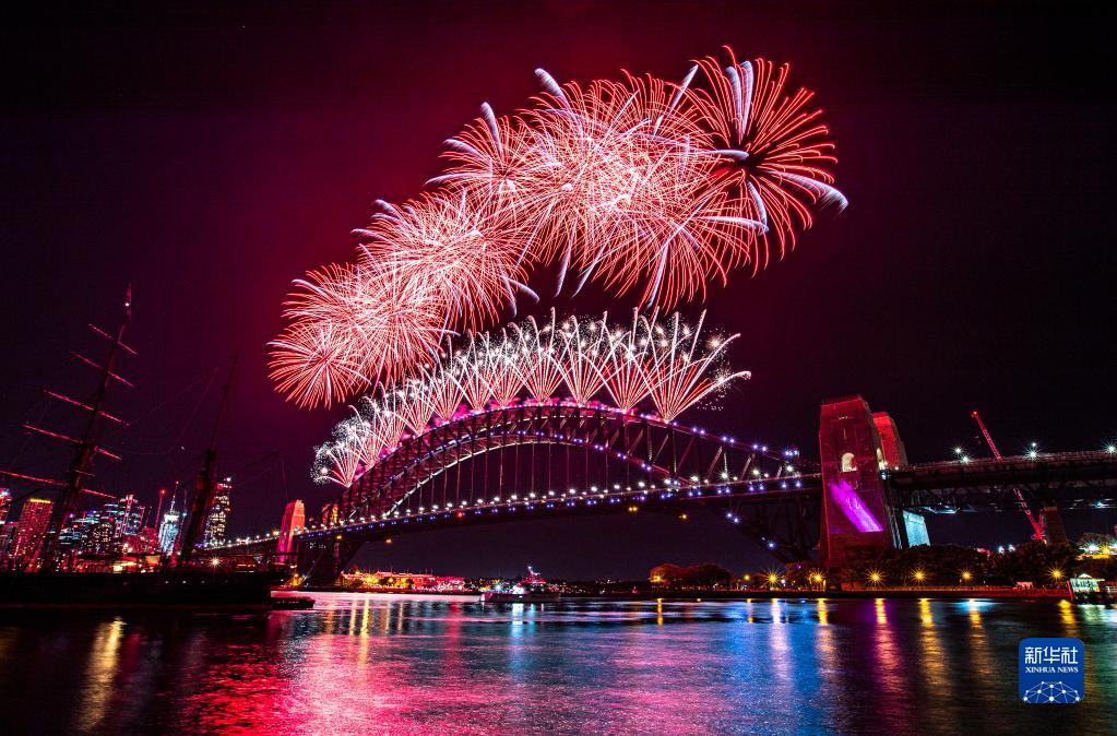 1月1日,烟花在澳大利亚悉尼海港大桥上空绽放,庆祝新年到来。新华社记者 白雪飞 摄