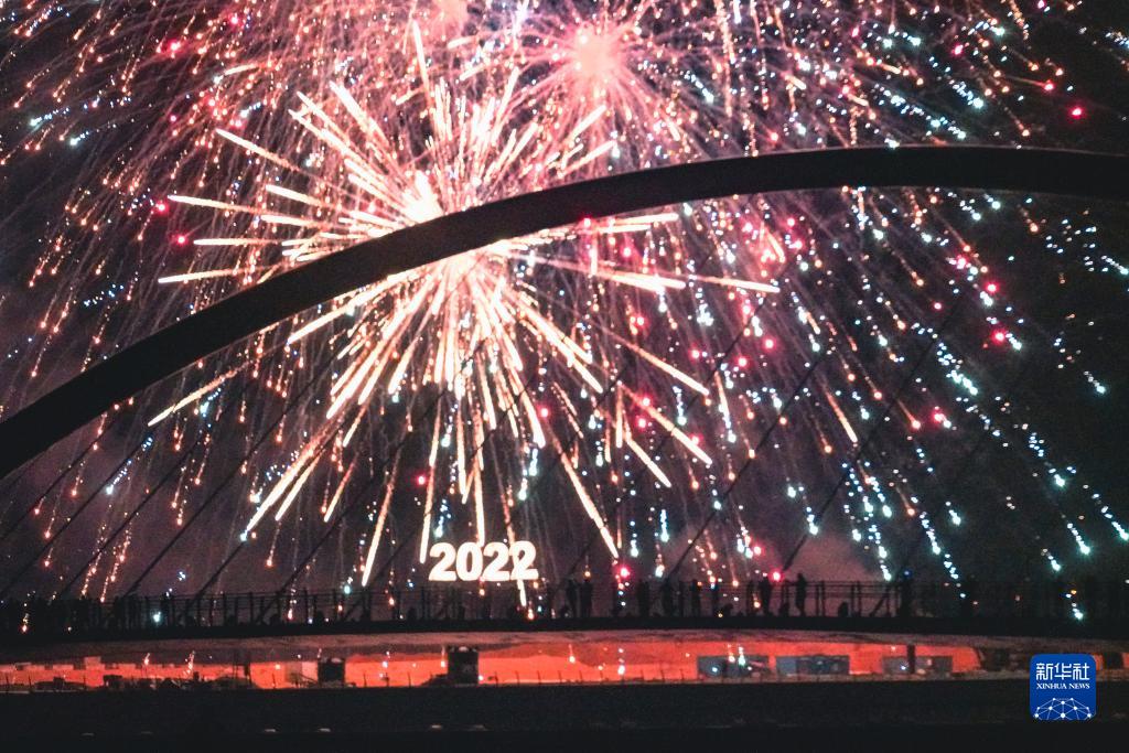 2021年12月31日,斯里兰卡科伦坡港口城燃放烟花迎接新年。