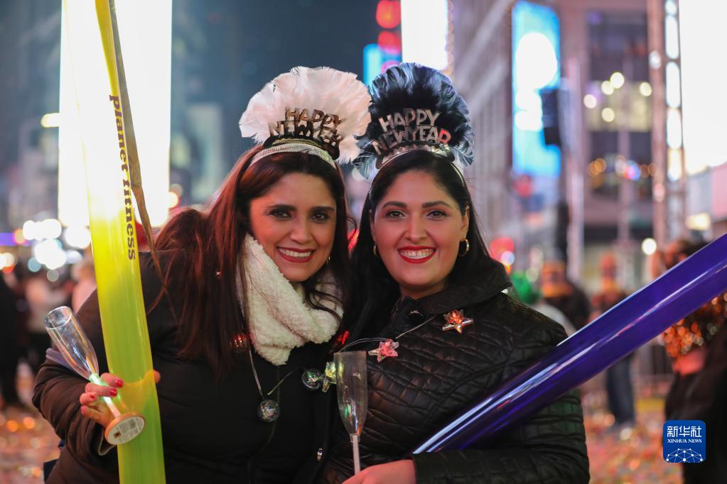 2022年1月1日,人们在美国纽约时报广场迎接新年。