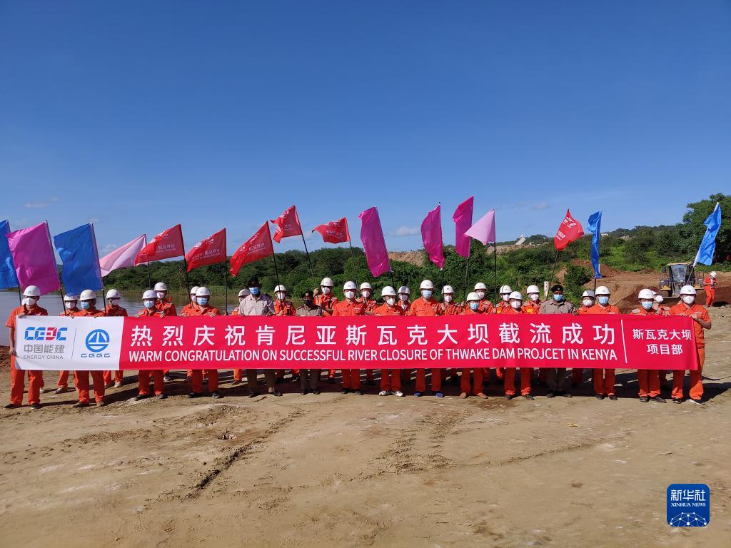 中国能建葛洲坝集团承建的肯尼亚斯瓦克多用途水利开发项目第一期——斯瓦克大坝工程于2021年12月31日成功截流,大坝主体工程正式进入全面施工的新阶段。新华社发(唐亚洲 摄)