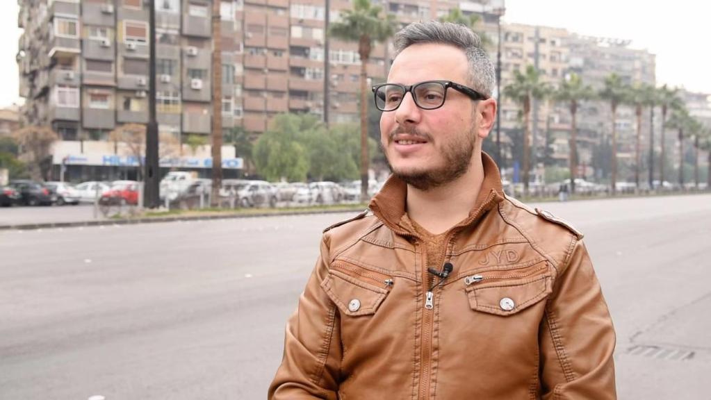 2021年12月28日,拉米·萨利赫在大马士革街头接受采访。(蒙塞夫·迈马里摄)