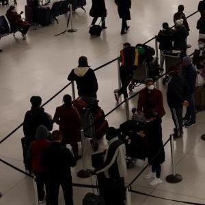 1月3日,旅客在美国纽约肯尼迪国际机场排队等待。据美国约翰斯·霍普金斯大学发布的新统计数据,全美3日新增新冠确诊病例突破100万例,再次刷新疫情暴发以来单日新增病例最高纪录。新华社发(郭克摄)