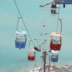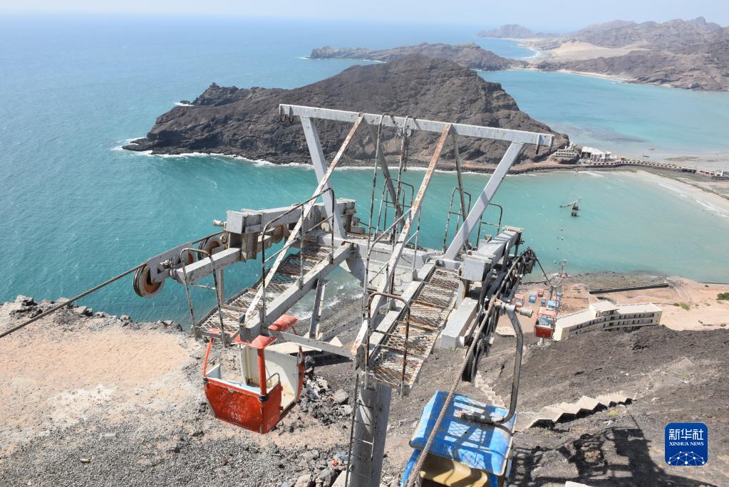这是1月2日在也门亚丁一处海滨公园拍摄的废弃的空中缆车。
