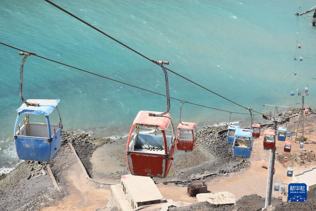 这是1月2日在也门亚丁一处海滨公园拍摄的废弃的空中缆车。