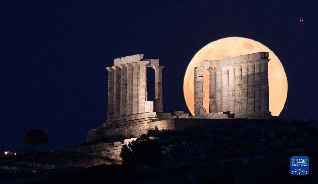 2021年5月26日,“超级月亮”出现在希腊苏尼翁的海神庙遗址上空。