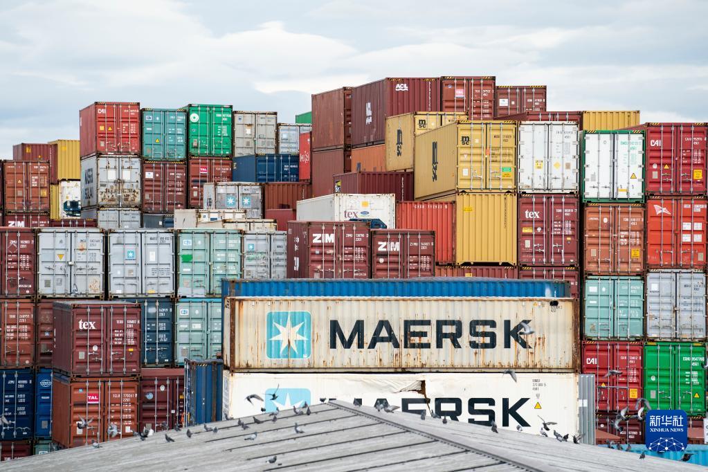 这是2021年10月26日在美国马里兰州巴尔的摩市港口拍摄的货运集装箱。新冠疫情影响叠加贸易保护主义进一步抬头,导致全球供应链遭遇严峻挑战。