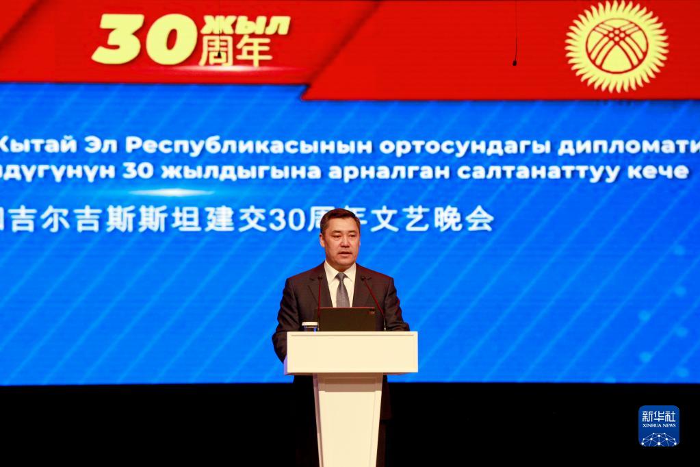 他说,建交30年来,吉中友好关系水平不断提升,成为国家间关系的典范。吉方高度重视同中方开展共建“一带一路”合作,愿以建交30周年为新起点,与中方进一步加强经贸、投资、安全、文化、教育、农业、互联互通等各领域合作以及在国际组织和地区事务中的协调配合,吉方对吉中关系的未来充满信心。