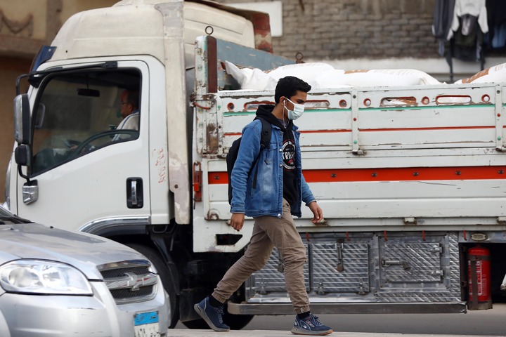 12月18日,行人在埃及开罗佩戴口罩出行。埃及首次报告奥密克戎毒株感染病例。 新华社发(艾哈迈德·戈马摄)