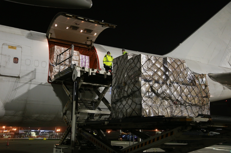 2020年3月26日,中国河钢集团捐赠的抗疫物资运抵塞尔维亚贝尔格莱德。新华社记者 石中玉 摄