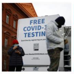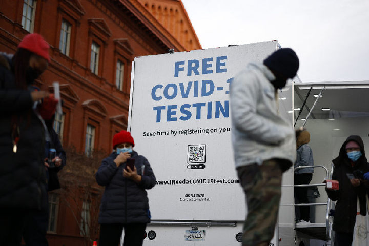 ↑2022年1月5日,人们在美国首都华盛顿一处流动检测点进行新冠病毒检测。新华社发 (沈霆摄)