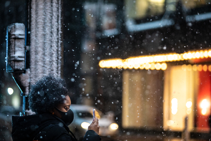 ↑2022年1月1日,在美国芝加哥,一名女子等待过马路。新华社发(文森特·约翰逊摄)