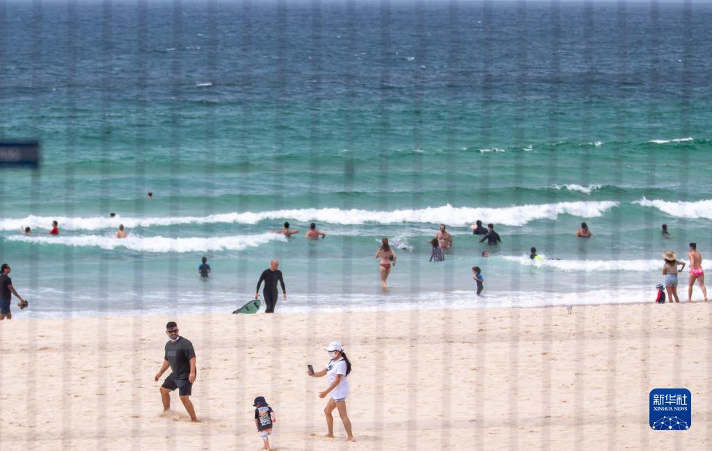 1月9日,在澳大利亚悉尼邦迪海滩,人们在海滨休憩。