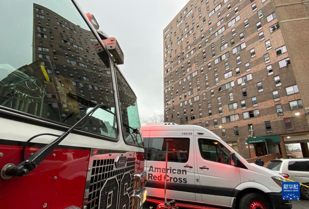 1月9日,救援车辆停在美国纽约市布朗克斯区发生火灾的公寓楼前。