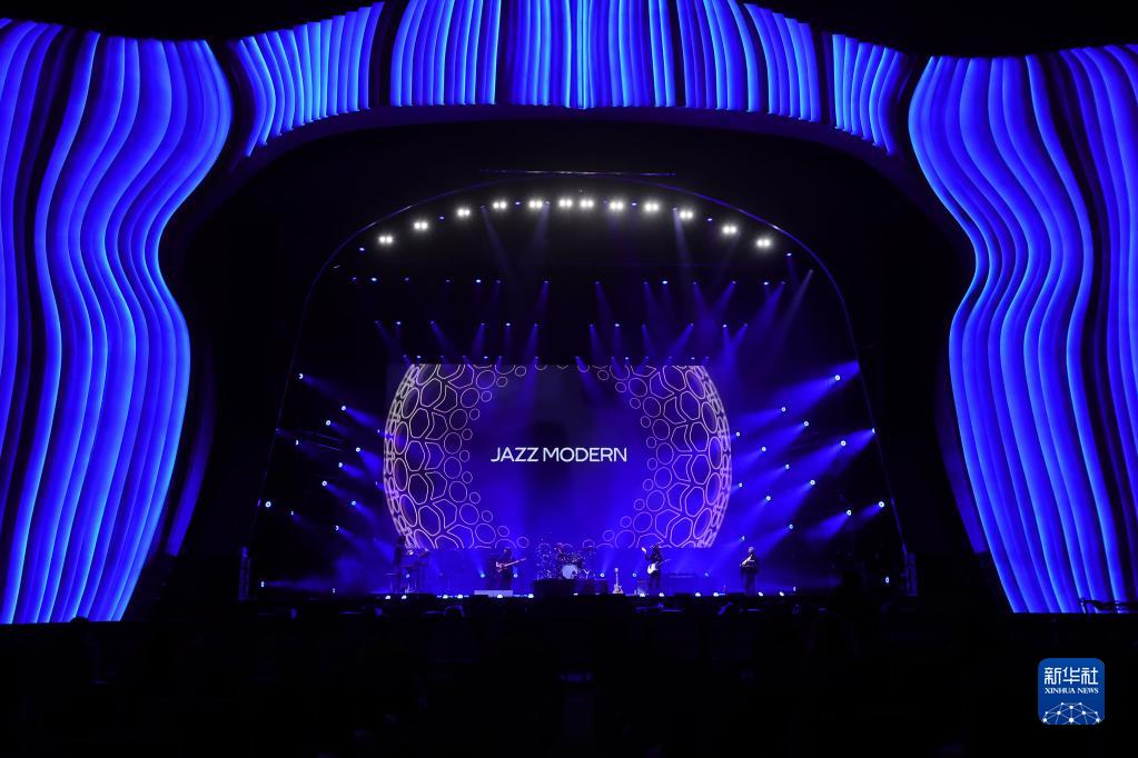 这是1月9日在阿拉伯联合酋长国迪拜拍摄的迪拜世博会音乐演出。