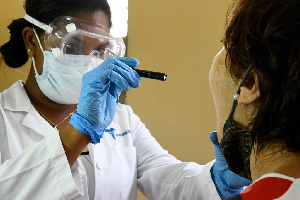 2021年1月28日,在古巴首都哈瓦那一处综合诊所,医务人员为接种古巴本土研发的“主权02”新冠候选疫苗的志愿者做检查。(新华社发,华金·埃尔南德斯摄)