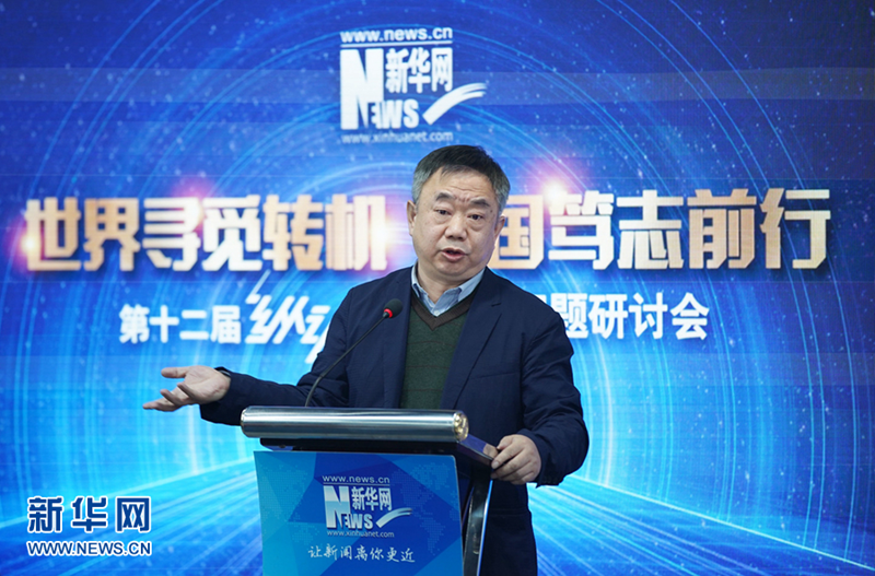 1月6日,新华网第十二届“纵论天下”国际问题研讨会在北京举办。图为中国社会科学院美国研究所所长倪峰在进行主旨演讲。 新华网 刘厦 摄