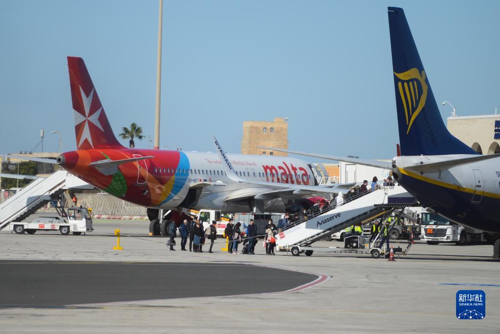 这是1月15日在马耳他卢加国际机场拍摄的马耳他航空公司的飞机。新华社发(乔纳森·博格 摄)