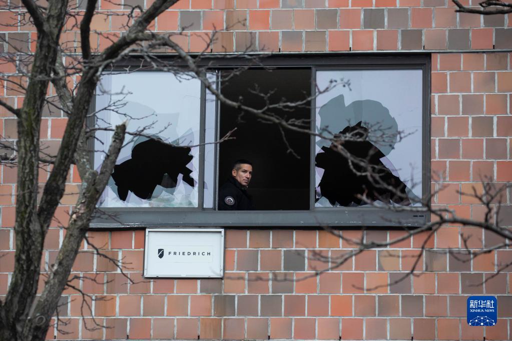 1月9日,调查人员从美国纽约发生火灾的公寓楼内向外张望。