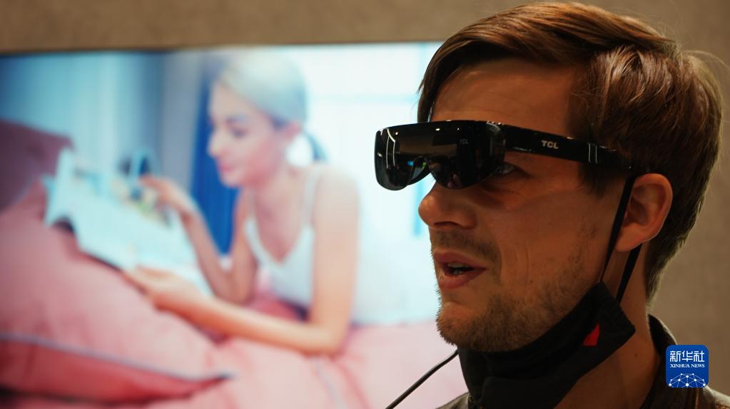 1月5日,一名男子在2022年美国拉斯维加斯消费电子展体验中国公司TCL生产的智能眼镜。