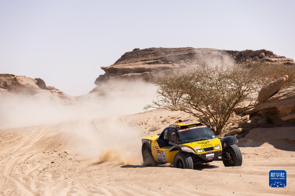 1月12日,韩魏赛车队车手田坡与领航员杜炫义驾驶273号赛车在赛道中驰骋。
