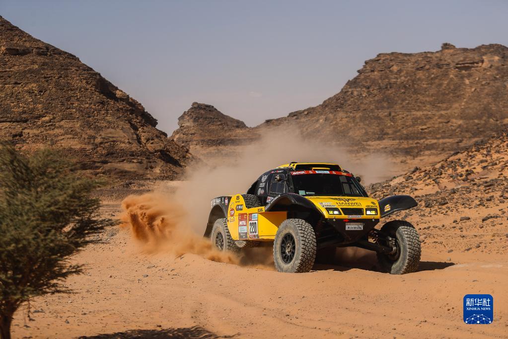 1月12日,韩魏赛车队车手韩魏与领航员马利驾驶220号赛车在赛道中驰骋。