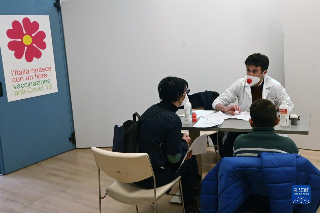 1月16日,人们在意大利博洛尼亚一处新冠疫苗接种中心登记接种新冠疫苗。