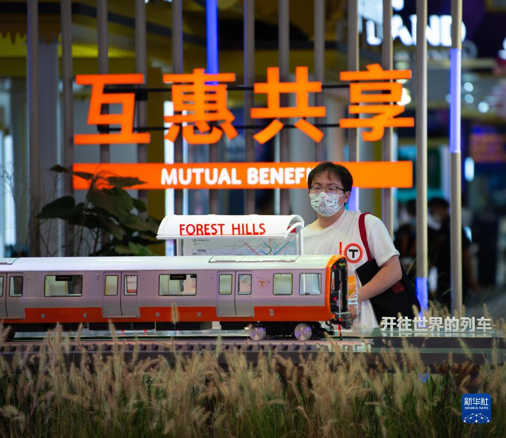 2021年9月4日,在位于北京的国家会议中心中国服务贸易发展成就展上,观众参观中国轨道交通出口装备模型。新华社记者 陈钟昊 摄
