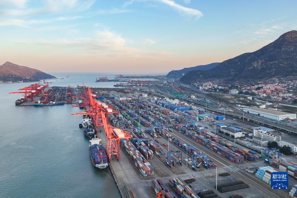 江苏连云港港集装箱码头一派繁忙(2021年12月1日摄,无人机照片)。国家统计局1月17日发布数据,2021年,中国国内生产总值(GDP)为1143670亿元,按不变价格计算,比上年增长8.1%。新华社发(司伟摄)