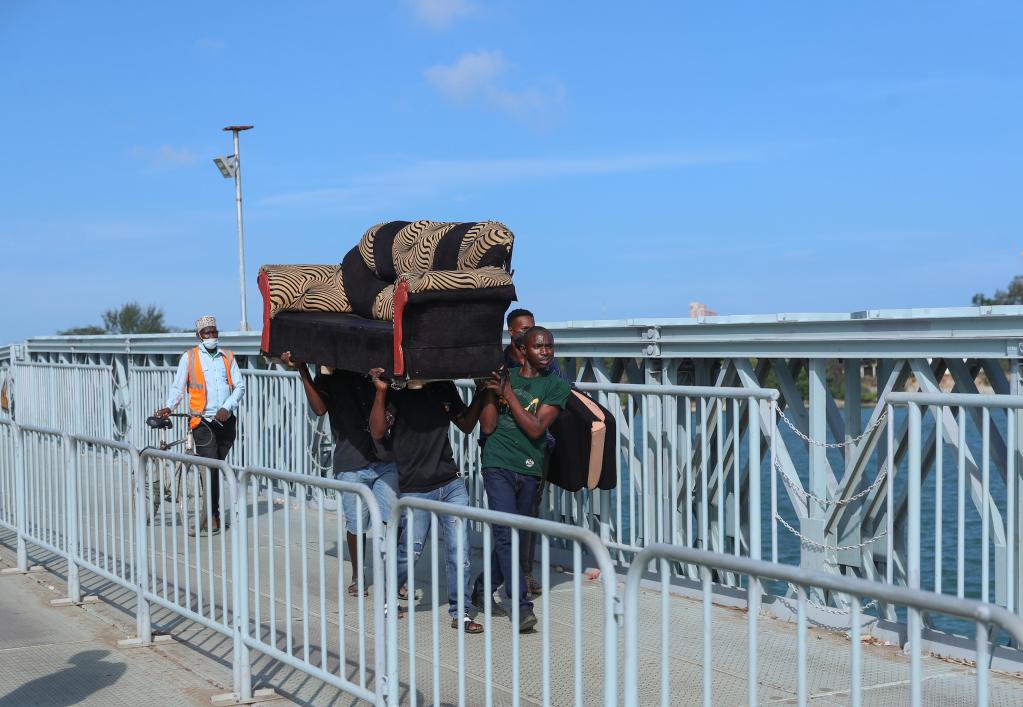 日前,记者一行来到利科尼浮桥。15时许,当日进出港的船只均通行完毕,浮桥开始合拢。16时许,从蒙巴萨岛返回利科尼的行人逐渐多了起来。