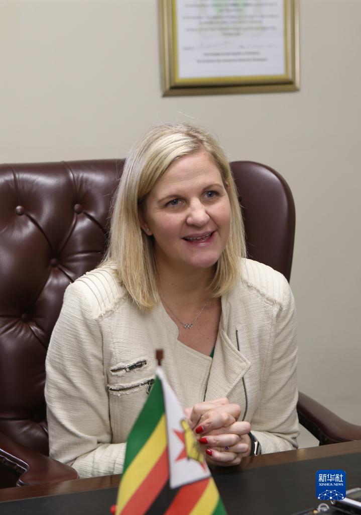 1月18日,津巴布韦青年、体育、艺术和娱乐部长柯丝蒂·考文垂在哈拉雷接受新华社记者采访。新华社记者 张玉亮 摄