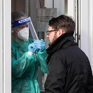 1月19日,在德国首都柏林,一名男子在一处新冠病毒检测站接受检测。