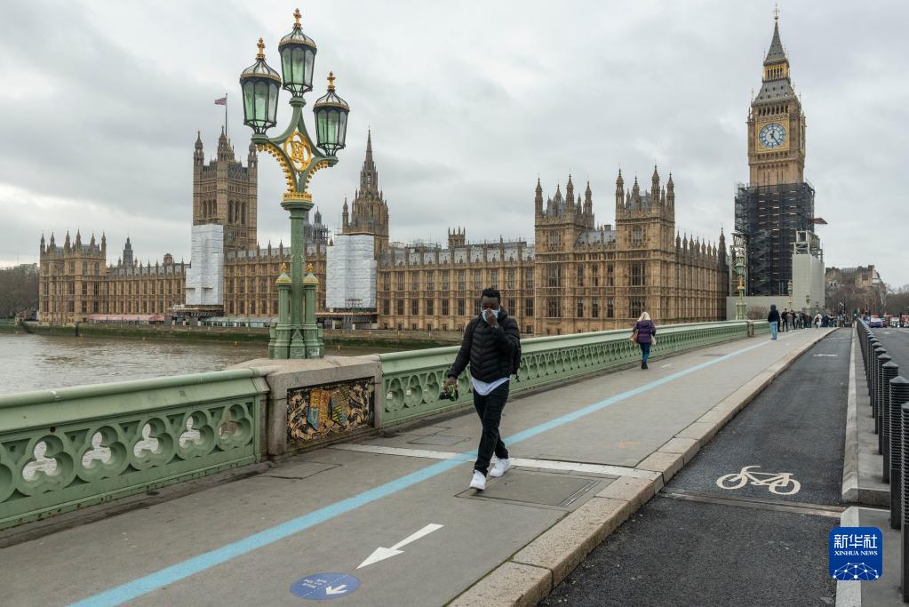 1月19日,一名男子走在英国伦敦威斯敏斯特桥上。新华社发(史蒂芬·程摄)