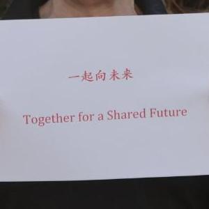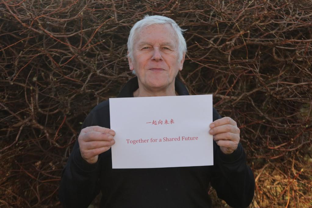1月17日,在英国温切斯特,老人菲利普·爱尔兰手举“一起向未来”的主题口号,祝福北京冬奥会。新华社发(蒂姆·爱尔兰摄)